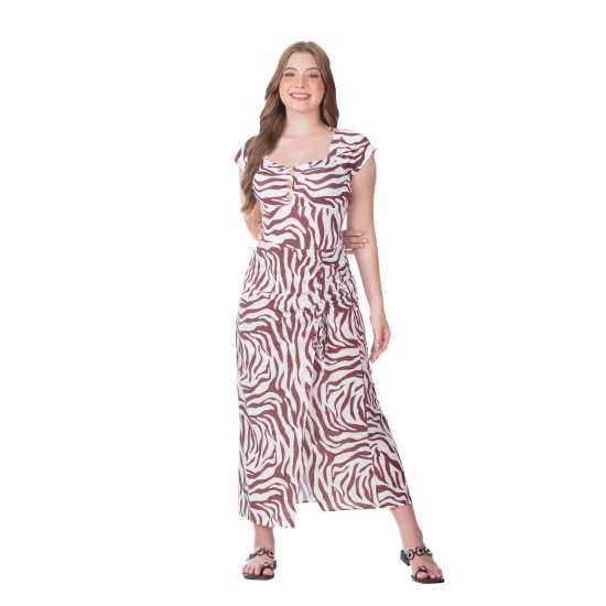 Canga Juliana Em Tecido Plano Estampado Marrom Escuro Hapuk Primavera/Verão 2026
