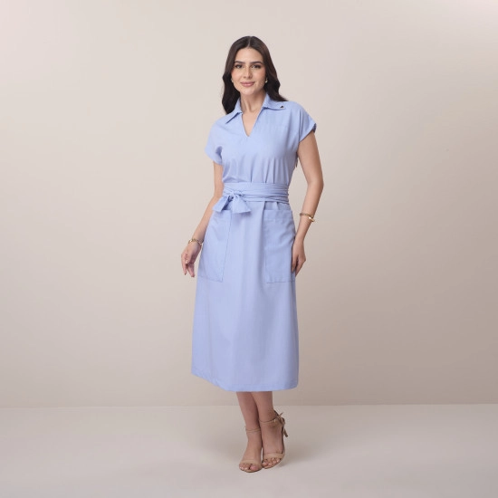 Vestido Emily Em Alfaiataria Azul Tatá Martello Primavera/Verão 2026