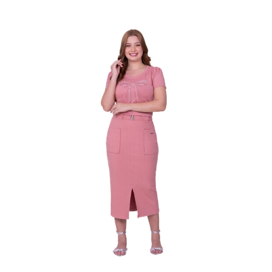 Saia Rose Em Malha Canelada Rosa Hapuk Primavera/Verão 2026