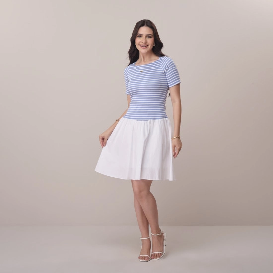Vestido Stefany Em Malha Trista E Tricoline Azul Tata Martello Primavera/Verão 2026
