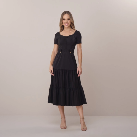 Vestido Franciele Em Crepe Maresia E Renda Preto Tata Martello Primavera/Verão 2026