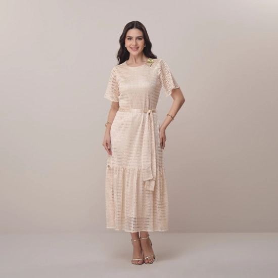 Vestido Jane Em Malha Crochet Bege Tatá Martello Primavera/Verão 2026