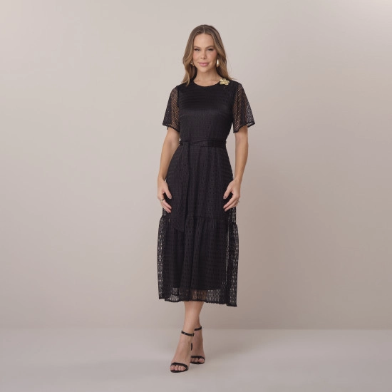 Vestido Jane Em Malha Crochet Preto Tatá Martello Primavera/Verão 2026