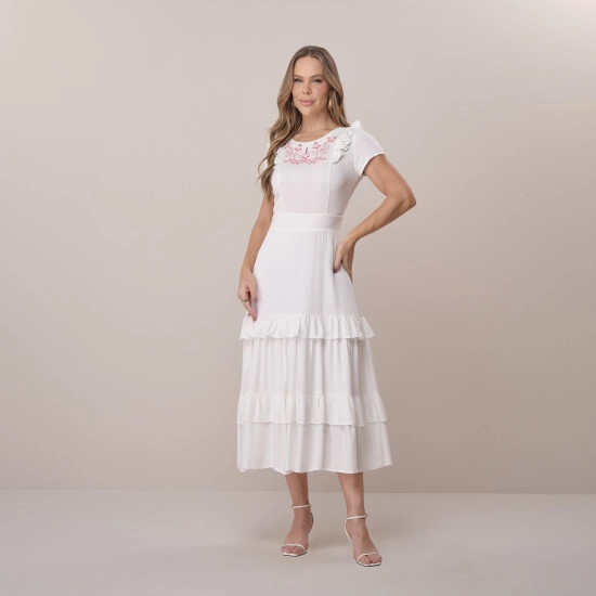 Vestido Amalia Em Viscose Rayon Com Bordado Branco Tata Martello Primavera/Verão 2026