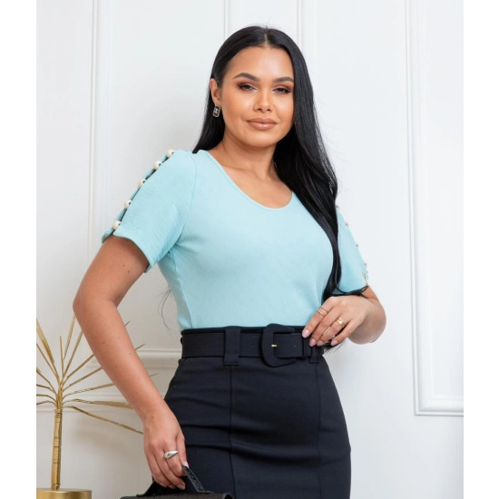Blusa Marléia Em Crepe Azul Maria Amore Primavera/Verão 2026