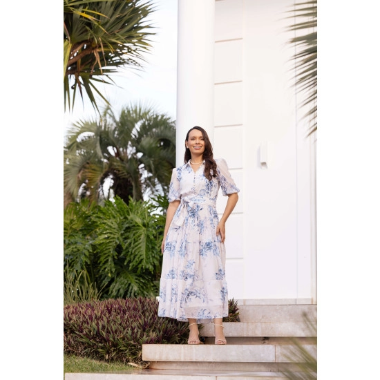 Vestido Vanessa Em Musseline E Toque De Seda Off White Jany Pim Primavera/Verão 2026