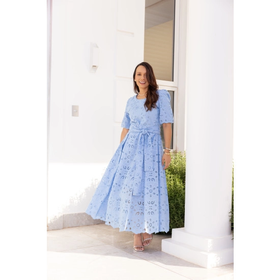 Vestido Elaine Em Laise Azul Jany Pim Primavera/Verão 2026