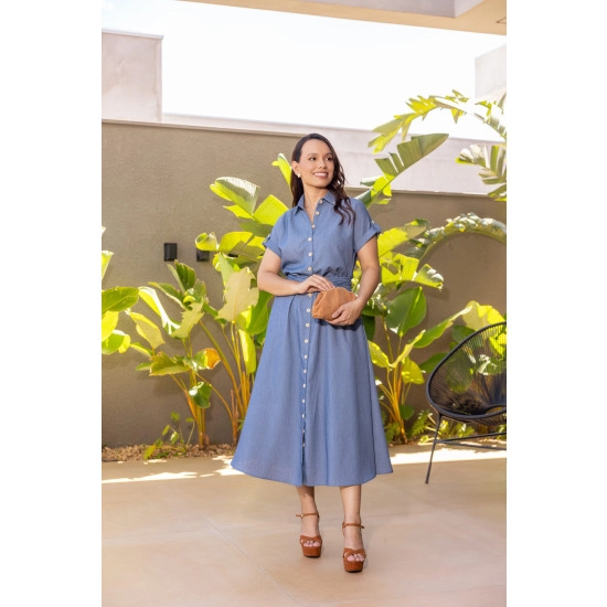 Vestido Heloisa Em Denin Azul Jany Pim Primavera/Verão 2026