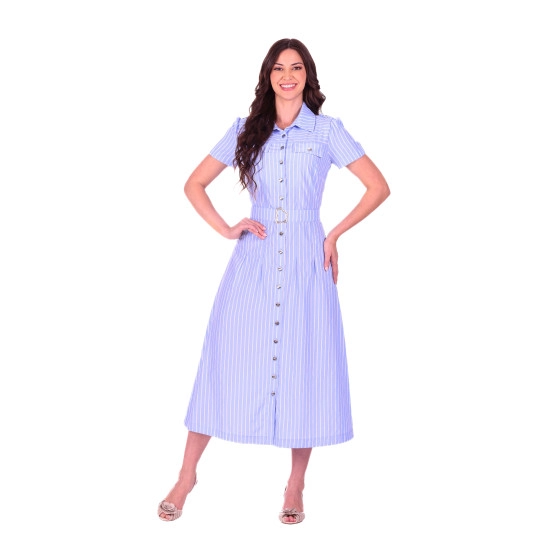 Vestido Lia EmTecido Plano Listrado Azul Hapuk Primavera/Verão 2026