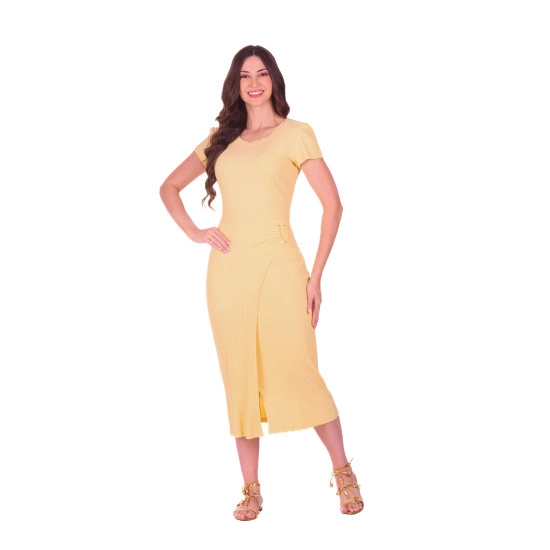 Vestido Tatiana Em Malha Canelada Amarelo Hapuk Primavera/Verão 2027