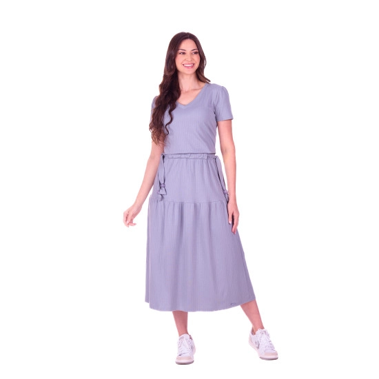 Vestido Beatriz Em Malha Texturizada Em Listras Cinza Hapuk Primavera/Verão 2027