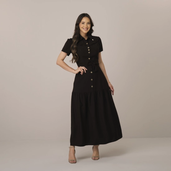 Vestido Lucia Em Alfaiataria Toscana Preto Tatá Martello Primavera/Verão 2026