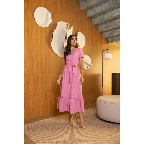 Vestido Heloisa Em Laise Rosa Jany Pim Primavera/Verão 2026