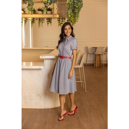 Vestido Sofia Em Navy Listrado Jany Pim Primavera/Verão 2026