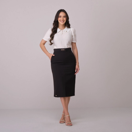 Saia Meire Em Alfaiataria Genebra Preto Tata Martello Primavera/Verão 2026