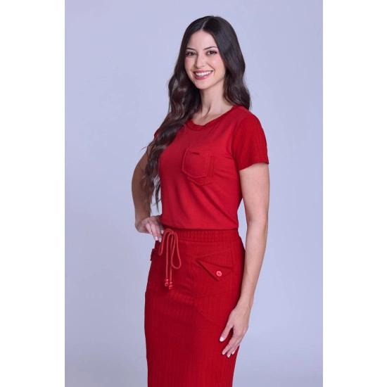 Blusa Elena Em Moletinho Leve E Malha Canelada Vermelho Hapuk Primavera/Verão 2026