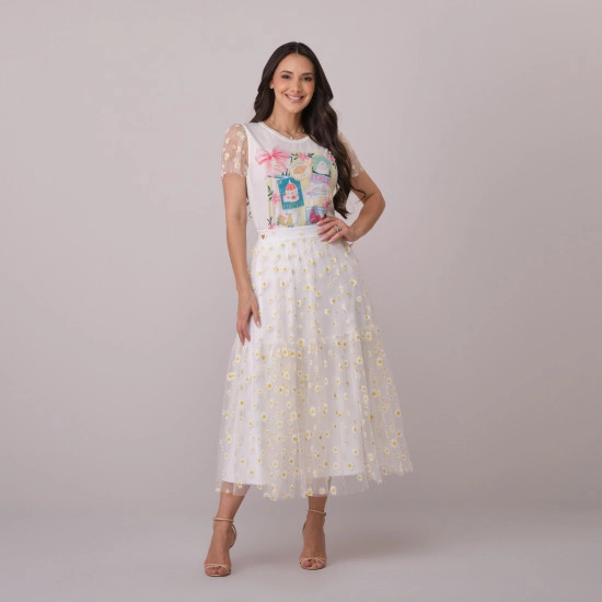 Saia Ariane Em Tule Off White Tata Martello Primavera/Verão 2026