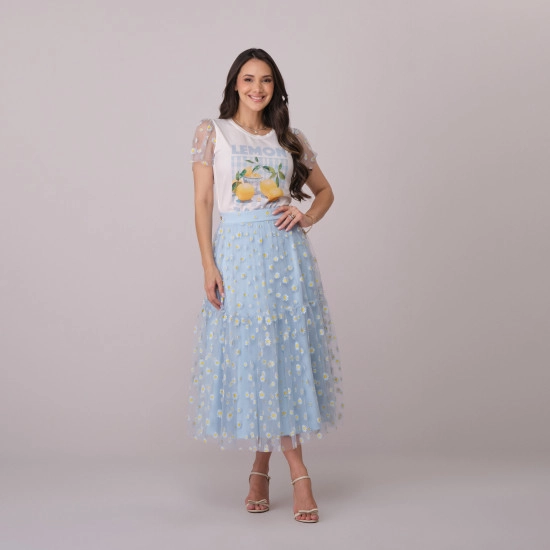 Saia Ariane Em Tule Azul Tata Martello Primavera/Verão 2026