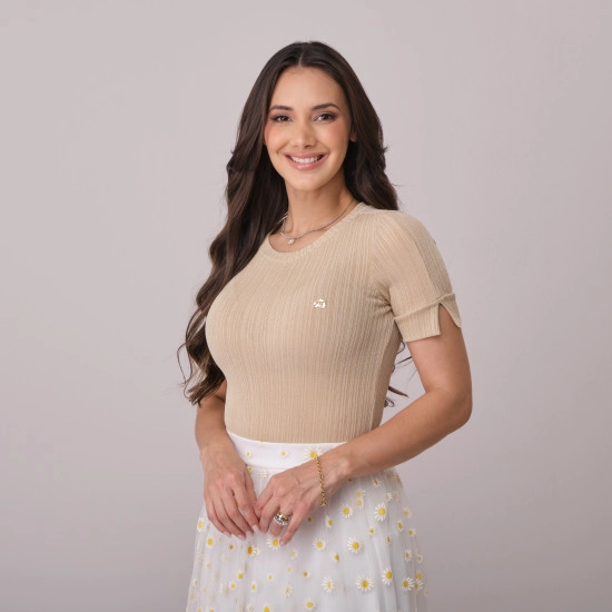 Blusa Iris Em Malha Flow Rib Bege Tata Martello Primavera/Verão 2026