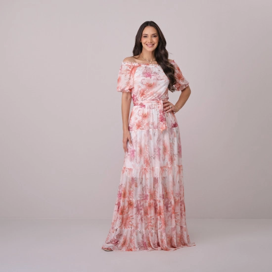 Vestido Fernanda Em Tule Estampado Rosa Tata Martello Primavera/Verão 2026
