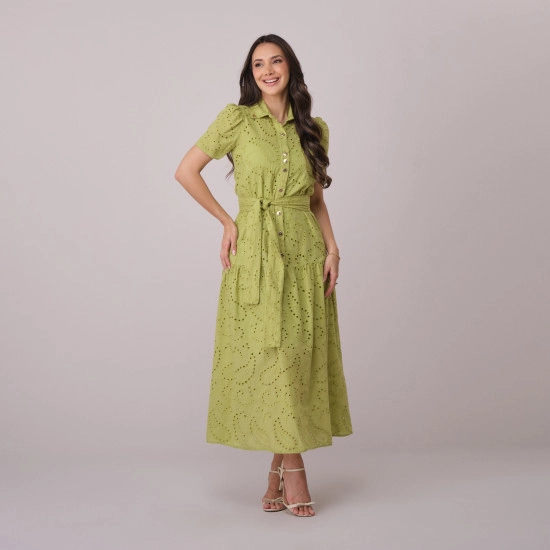 Vestido Juliete Em Algodão Bordado Verde Tata Martello Primavera/Verão 2026