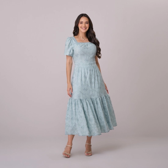 Vestido Anelise Em Rayon Bordado Azul Tata Martello Primavera/Verão 2026