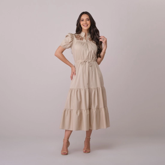 Vestido Romana Em Tricoline Bege Tata Martello Primavera/Verão 2026