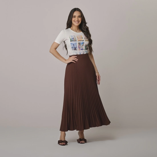 Saia Melissa Em Crepe Marrom Tata Martello Outono/Inverno 2026