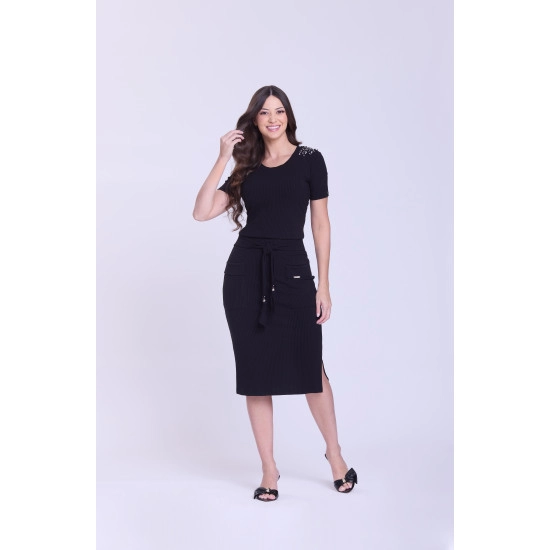 Saia Fernanda Em Malha Canelada Preto Hapuk Outono/Inverno 2026
