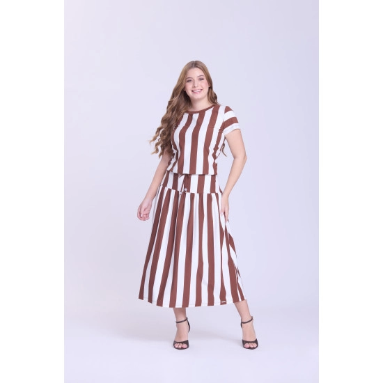 Conjunto Franciele Em Malha Listrada Marrom HapukOutono/Inverno 2026