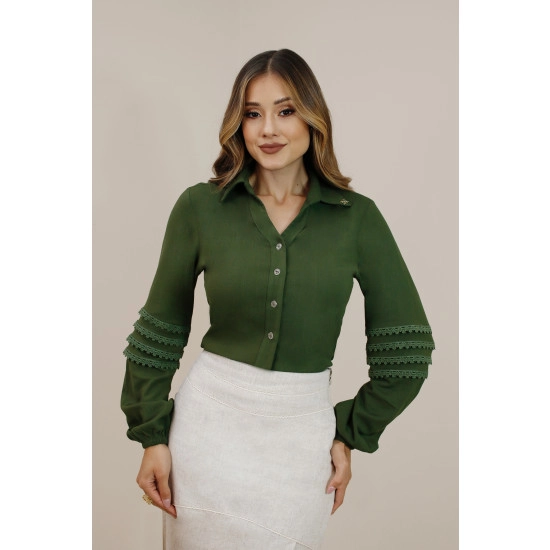 Camisa Fátima Em Viscose Verde Militar Nitido Outono/Inverno 2026