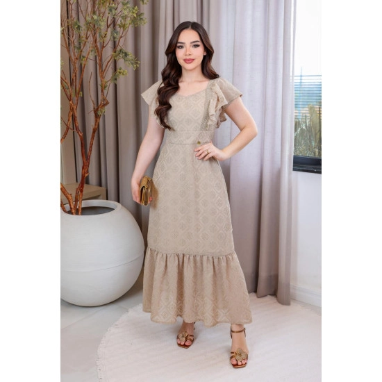 Vestido Rejane Em Chiffon Bordado Bege Maria Amore Outono/Inverno 2026