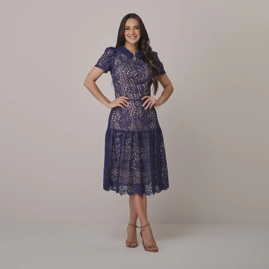 Vestido Ivy Em Renda Azul Marinho Tata Martello Outono/Inverno 2026