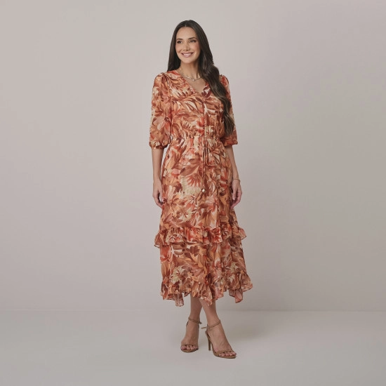 Vestido Cassiane Em Crepe Estampado Laranja Tata Martello Outono/Inverno 2026