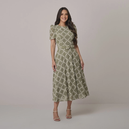 Vestido Analia Em Tela Bordada Verde Tata Martello Outono/Inverno 2026