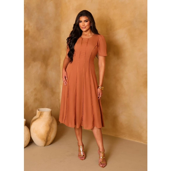 Vestido Telma Em Viscolinho Marrom Maria Amore Outono/Inverno 2026