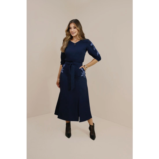Saia Calendula Com Fendas Frontais Azul Noite Plus Size Nitido Outono/Inverno 2026