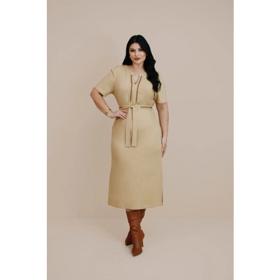 Vestido Camomila Em Viscose Camel Plus Nitido Outono/Inverno 2026