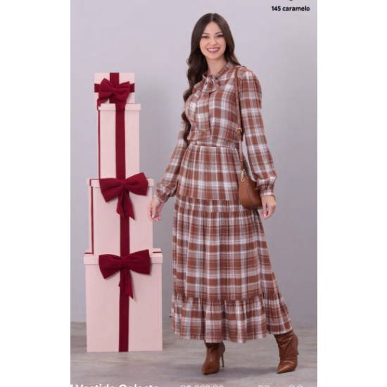 Vestido Celeste Em Tecido Plano Xadrez Caramelo Hapuk Outono/Inverno 2026