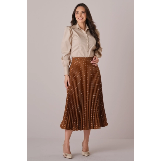 Saia Vitoria Em Crepinho Plissado Marrom Tata Martello Outono/Inverno 2026