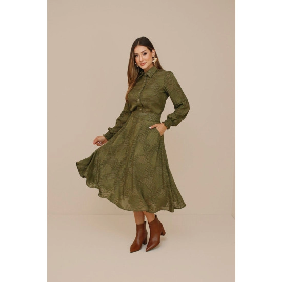 Saia Priscila Em Jacquard Verde Nitido Outono/Inverno 2026