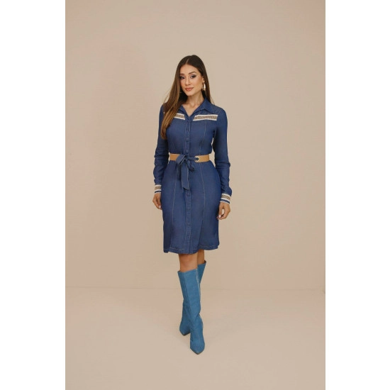 Vestido Maressa Denim Com Renda Nitido Outono/Inverno 2026