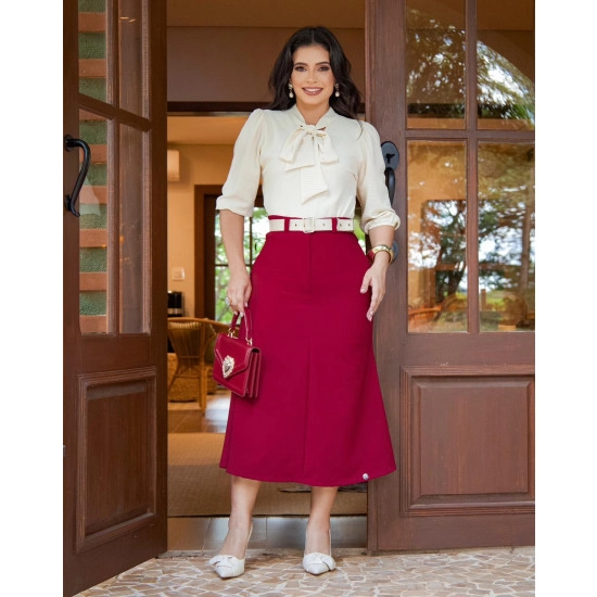 Saia Stela Em Alfaiataria Bordô Maria Amore Outono/Inverno 2026