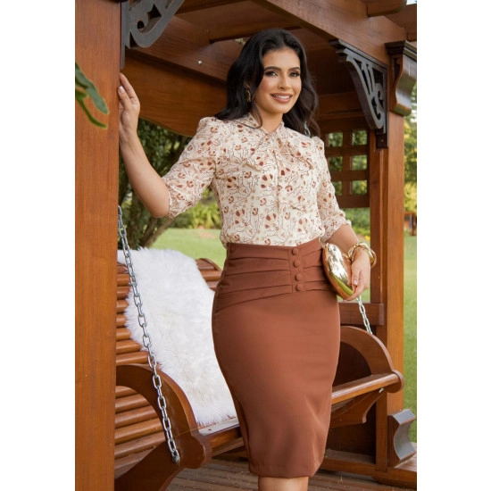 Saia Luciana Em Alfaiataria Marrom Maria Amore Outono/Inverno 2026