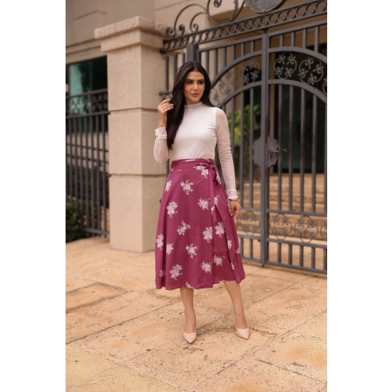 Saia Mirella Em Toque De Seda Vinho Jany Pim Outono/Inverno 2026