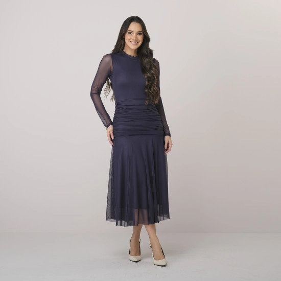 Vestido Amabia Em Tule Liso Azul Noite Tata Martello Outono/Inverno 2026