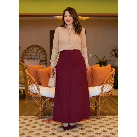 Saia Renata Em Alfaiataria Marrant Vinho Maria Amore Outono/Inverno 2026