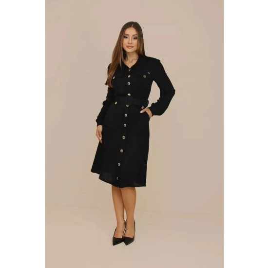 Vestido Pedrita Em Visco Linho Preto Nitido Outono/Inverno 2026