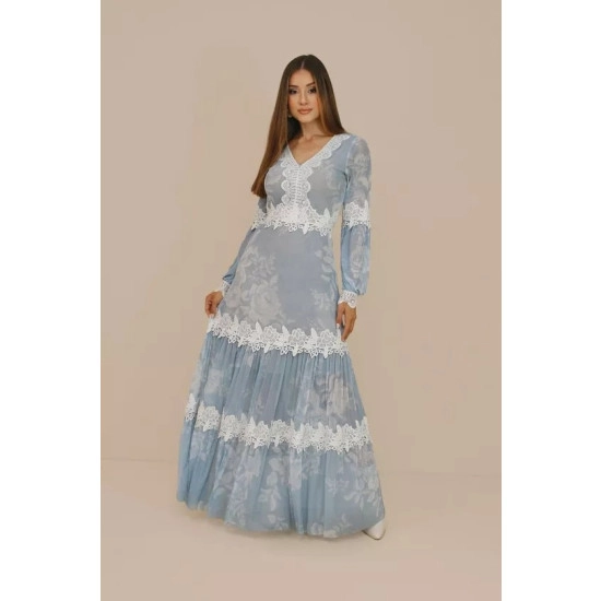 Vestido Barbara Em Tule Azul Nitido Outono/Inverno 2026
