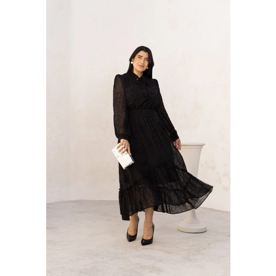 Vestido Erika Em Musseline Preto Jany Pin Outono/Inverno 2026